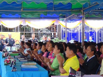 เมื่อวันที่ ๑๔ มิถุนายน ๒๕๕๖ นายสุพัฒน์ สุวรรณสิงห์ ผอ.กศน.อำเภอเมืองเลย พร้อมคณะครู กศน.ตำบลนาดินดำ และห้องสมุดประชาชนจังหวัดเลย เข้าร่วมงานการประกวดหมู่บ้านอาสาพัฒนาและป้องกันตนเอง (อพป.) กอ.รมน.ภาค ๒ ประจำปี ๒๕๕๖ โดยมี พล.ต.มนัส หนูวัฒนา ประธานกรรมการฯ พร้อมคณะกรรมการการประกวดหมู่บ้านอาสาพัฒนาและป้องกันตนเอง ระดับภาค ได้เดินทางมาตรวจให้คะแนนการประกวดหมู่บ้านอาสาพัฒนาและป้องกันตนเอง หรือ หมู่บ้าน อพป. ระดับภาค ณ บ้านหนองนาทราย ตำบลนาดินดำ อำเภอเมืองเลย จังหวัดเลย โดยมี พ.อ.โฆษิตวัฒน์ เฉวียงวงษ์ รองผู้อำนวยการรักษาความมั่นคงภายในจังหวัดเลย พร้อมหน่วยงานที่เกี่ยวข้อง และชาวบ้านหนองนาทราย ให้การต้อนรับ