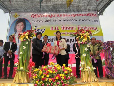 วันเสาร์ที่ ๑๕ มิถุนายน พ.ศ.๒๕๕๖ นำโดยนางสาวสังวาล สุวรรณโสภา ผู้อำนวยการศูนย์การศึกษานอกระบบและการศึกษาตามอัธยาศัยอำเภอผาขาว และบุคลากร จัดพิธีเปิดโครงการหมู่บ้านเรียนรู้ตลอดชีวิต ณ บ้านหัวขัว หมู่ที่ ๑๐ ตำบลท่าช้างคล้อง อำเภอผาขาว จังหวัดเลย โดยได้รับเกียรติจากท่านนันทนา ทิมสุวรรณ ส.ส.จังหวัดเลย เขต ๒ มาเป็นประธานในพิธีเปิดและได้รับเกียรติจากส่วนราชการ องค์กรปกครองส่วนท้องถิ่น ชุมชน ประชาชน มาร่วมงานในพิธีเปิดและร่วมต้อนรับการเปิดงานหมู่บ้านเรียนรู้ตลอดชีวิตในครั้งนี้อย่างด้วย