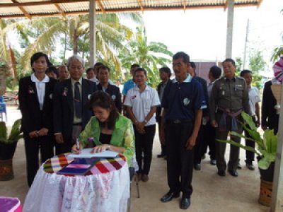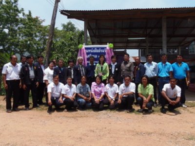 นางสมใจ สายมา ผอ.กศน.อำเภอภูหลวงพร้อมบุคลากร เปิดป้ายโครงการหมู่บ้านเรียนรู้ตลอดชีวิต ณ