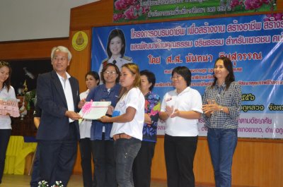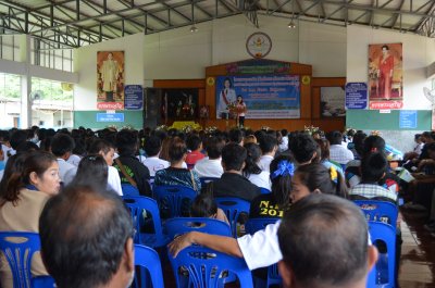 เมื่อวันที่ ๗ - ๘ กรกฎาคม ๒๕๕๖ ที่ผ่านมา กศน.อำเภอภูกระดึง นำโดย ว่าที่ ร.ต.หญิงทิวาพร จูมศรีสิงห์ ผู้อำนวยการ พร้อมด้วยคณะครูและบุคลากร ได้นำนักศึกษา และเยาวชนอำเภอภูกระดึง จำนวน ๑๐๘ คน เข้าร่วมกิจกรรมโครงการอบรมอาชีพ เพื่อสร้างงาน สร้างอาชีพ สร้างรายได้ และพัฒนาด้านคุณธรรม จริยธรรม สำหรับเยาวชนคนไทเลย ณ โรงเรียนบ้านหนองบัว ตำบลภูหอ อำเภอภูหลวง จังหวัดเลย โดยได้รับเกียรติจากท่านนันทนา ทิมสุวรรณ สมาชิกสภาผู้แทนราษฎรจังหวัดเลย เขต ๒ เป็นประธานในพิธีเปิด พร้อมให้โอวาทแก่เยาวชนผู้เข้าร่วมโครงการ และเยี่ยมชมนิทรรศการ การฝึกทักษะอาชีพทั้ง ๑๕ ฐานการเรียนรู้ ซึ่งในการอบรมมีเยาวชนจากอำเภอในกลุ่มโซนวัง ภู ผา ๕ อำเภอ ได้แก่ วังสะพุง ภูหลวง ภูกระดึง ผาขาว และหนองหิน เข้าร่วมกิจกรรมในครั้งนี้จำนวนมากกว่า ๕๐๐ คน ทั้งนี้ หลังจากการอบรมทั้งสองวันแล้ว กศน.อำเภอในกลุ่มโซนจะดำเนินการฝึกอบรมเพื่อต่อยอดในแต่ละอาชีพในพื้นที่ของแต่ละอำเภอต่อไป
