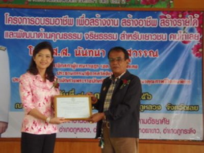 กศน.อำเภอภูหลวง จัดกิจกรรมโครงการฝึกอบรมอาชีพ เพื่อสร้างงาน สร้างอาชีพ สร้างรายได้ เพื่อพัฒนาด้านคุณธรรมจริยธรรม สำหรับเยาวชนคนไทเลย
