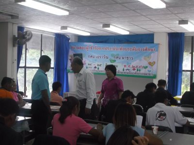 ศูนย์เทียบระดับทางการศึกษานอกระบบและการศึกษาตามอัธยาศัยอำเภอผาขาว-อำเภอเอราวัณ จัดสอบประเมินให้กับผู้สมัครเข้าเทียบระดับทางการศึกษา ประจำภาคเรียนที่ ๑ ปีการศึกษา ๒๕๕๖ ณ สนามสอบเทียบระดับทางการศึกษาอำเภอผาขาว