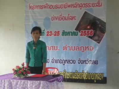 กศน.ตำบลภูหอ สังกัดศูนย์การศึกษานอกระบบและการศึกษาตามอัธยาศัยอำเภอภูหลวง จัดโครงการฝึกอบรมช่างเชื่อมโลหะ ในวันที่ ๔ กันยายน ๒๕๕๖ ณ กศน.ตำบลภูหอ อำเภอภูหลวง จังหวัดเลย