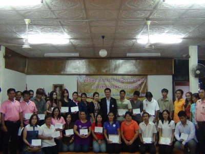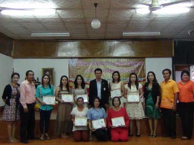 เมื่อวันที่ ๓ ตุลาคม ๒๕๕๖ นายสุพัฒน์ สุวรรณสิงห์ ผอ.กศน.อำเภอเมืองเลย เป็นประธานพีธีเปิดมอบใบประกาศนียบัตรสำหรับผู้จบหลักสูตรวิชาชีพระยะสั้นดัดผม-เสริมสวย และนวดแผนไทย และผู้ผ่านการประเมินเทียบระดับการศึกษาของครั้งที่ ๑ ปีการศึกษา ๒๕๕๖ ณ ห้องประชุมคุรุสัมนาคาร กศน.อำเภอเมืองเลย