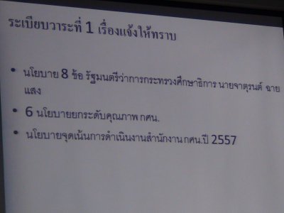 เมื่อวันที่ ๑๒ พฤศจิกายน ๒๕๕๖ นายสุพัฒน์ สุวรรณสิงห์ ผู้อำนวยการ กศน.อำเภอเมืองเลย ประชุมชี้แจง รับมอบนโยบาย การศึกษาขั้นพื้นฐาน โดยมีคณะบุคลากรครู กศน. อำเภอเมืองเลย เข้าประชุมกันอย่างพร้อมเพรียง ณ ห้องประชุมรองเท้านารีเหลือง กศน.อำเภอเมืองเลย