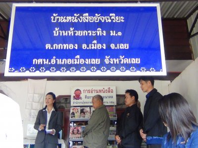 เมื่อวันที่ ๑๖ ธันวาคม ๒๕๕๖ ศาสตราจารย์ ดร. สุชาติ ธาดาธำรงเวช พร้อมทีมงานเทคโนโลยีการศึกษา ETV ลงพื้นที่ถ่ายทำรายการและเยี่ยมชมศูนย์ฝึกอาชีพ กศน.อำเภอเมืองเลย, ห้องเรียน English Program EP, ห้องสมุดประชาชน จังหวัดเลย,โดยมี ว่าที่ พ.ต. สุรพล ประเสริฐธรรม รองผู้อำนวยการสำนักงาน กศน.จังหวัดเลย นายสุพัฒน์ สุวรรณสิงห์ ผอ.กศน.อำเภอเมืองเลย พร้อมบุคลกร กศน.อำเภอเมืองเลยให้การต้อนรับ จากนั้นศาสตราจารย์ ดร. สุชาติ ธาดาธำรงเวช พร้อมทีมงานเทคโนโลยีการศึกษา ETVได้เดินทางไปถ่ายทำรายการกิจกรรมส่งเสริมการอ่าน บ้านหนังสืออัจฉริยะบ้านห้วยกระทิง และแพหนังสือ ของกศน.อำเภอเมืองเลย ณ หมู่บ้านเรียนรู้ตลอดชีวิตบ้านห้วยกระทิง ตำบลกกทอง อำเภอเมืองเลย จังหวัดเลย