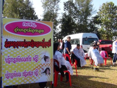 เมื่อวันที่ ๑๘ ธันวาคม ๒๕๕๖ กศน.อำเภอเมืองเลย ร่วมออกหน่วยบริการจังหวัดเคลื่อนที่และโครงการ "หน่วยบำบัดทุกข์ บำรุงสุข สร้างรอยยิ้มให้ประชาชน ครั้งที่ ๓ ประจำปี ๒๕๕๗ ณ บ้านหนองผำ ตำบลนาดินดำ อำเภอเมืองเลย จังหวัดเลย โดยมีนายวิโรจน์ จิวะรังสรรค์ ผู้ว่าราชการจังหวัดเลย และนางวณี จิวะรังสรรค์ นายกเหล่ากาชาดจังหวัดเลย ให้เกียรติมาเป็นประธานเปิดงานและร่วม มอบทุนการศึกษาให้แก่เด็กนักเรียน มอบผ้าห่มกันหนาว และสิ่งของที่จำเป็นสำหรับดำรงชีพ ประชาชนในพื้นที่ ซึ่งกศน.อำเภอเมืองเลยนำโดยว่าที่ พ.ต. สุรพล ประเสริฐธรรม รองผู้อำนวยการ สำนักงาน กศน.จังหวัดเลย นายสุพัฒน์ สุวรรณสิงห์ ผอ.กศน.อำเภอเมืองเลย และบุคลากร ครู กศน.อำเภอเมืองเลย เข้าร่วมออกหน่วยบริการเคลื่อนที่ โดยได้นำรถโมบายเคลื่อนที่ออกให้บริการ บริการตัดผมชายฟรี บริการตัดผมเสริมสวยฟรี ไอติมโบราณ ขนมเค๊ก มาบริการแจกประชาชนในเขตพื้นที่ฟรี