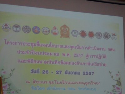 เมื่อวันที่ ๒๖ - ๒๗ ธันวาคม ๒๕๕๗ นายบุญโชค พลดาหาญ ผู้อำนวยการ สำนักงาน กศน.จังหวัดเลย เป็นประธานเปิดโครงการประชุ
