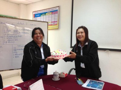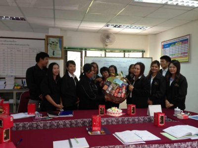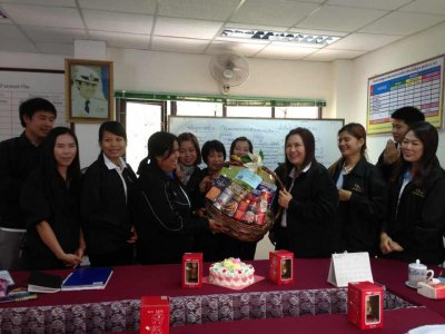 บุคคลากร กศน.อำเภอเอราวัณ เข้ามอบกระเช้าของขวัญปีใหม่ นางปิยะนุช กุณวงษ์ ผอ.กศน.อำเภอเอราวัณ
