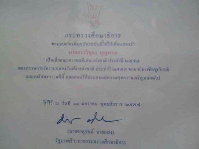 นางสาววิชุดา บุญพรม นักศึกษา กศน.อำเภอเมืองเลย เข้ารับเกียรติบัตรเยาวชนดีเด่นจาก รัฐมนตรีว่าการกระทรวงศึกษาธิการ