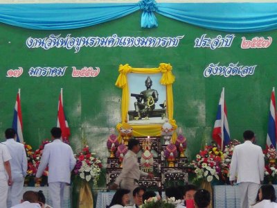 เมื่อวันที่ ๑๗ มกราคม ๒๕๕๗ กศน.อำเภอเมืองเลย เข้าถวายพานพุ่มสักการะ "วันพ่อขุนรามคำแหงมหาราช" ประจำปี ๒๕๕๗ ณ หอประชุมอำเภอเมืองเลย จังหวัดเลย เพื่อรำลึกถึงพระมหากรุณาธิคุณของพ่อขุนรามคำแหงมหาราชที่มีต่อประชาชนชาวไทย โดยอดีตพ่อขุนรามคำแหงมหาราช ทรงเป็นพระมหากษัตริย์พระองค์ที่ ๓ ในราชวงศ์พระร่วงแห่งราชอาณาจักรสุโขทัย เสวยราชย์ประมาณ พ.ศ. ๑๘๙๒ ถึงประมาณ พ.ศ. ๑๘๔๑ พระองค์ทรงรวบรวมอาณาจักรไทยจนเป็นปึกแผ่นกว้างขวาง ทั้งยังได้ทรงประดิษฐ์ตัวอักษรไทยขึ้น ทำให้ชาติไทยได้สะสมความรู้ทางศิลปะ วัฒนธรรม และวิชาการต่าง ๆ สืบทอดกันมากว่าเจ็ดร้อยปี