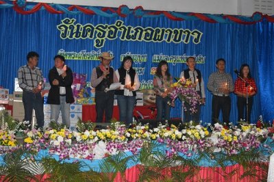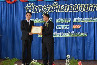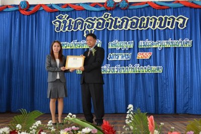 เมื่อวันที่ ๑๖ มกราคม ๒๕๕๗ เวลา ๐๙.๐๐ น. กศน.อำเภอผาขาว นำโดย นางสาวสังวาล สุวรรณโสภา ผู้อำนวยการพร้อมคณะบุคลากร เข้าร่วมกิจกรรมวันครู ประจำปี ๒๕๕๗ ณ หอประชุมโรงเรียนโนนปอแดง โดยมีท่านณรงศักดิ์ พลศักดิ์ ปลัดจังหวัดเลย เป็นประธานในพิธีในการจัดงานวันครูครั้งนี้ บุคลากรกศน.อำเภอผาขาวเข้าร่วมรับวุฒิบัตรและโล่เกียรติคุณในครั้งนี้ด้วย