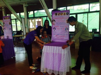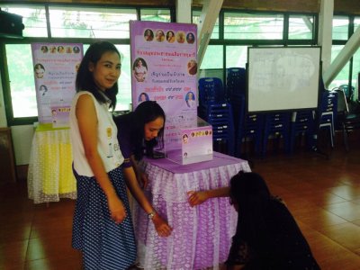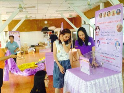 กศน.อำเภอเมืองเลย จัดทำฐานตั้งกล่องรับบริจาคการจัดสร้าง โครงการห้องสมุดประชาชน "เฉลิมราชกุมารี" จังหวัดเลย