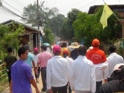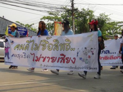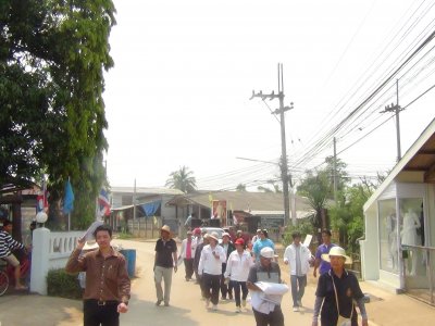 จากนั้นเวลาต่อมา สุพัฒน์ สุวรรณสิงห์ ผอ.กศน.อำเภอเมืองเลย พร้อมคณะบุคลากร กศน.อำเภอเมืองเลย ได้ออกเดินทางไปร่วมเดินขบวนรณรงค์ฯ ของศูนย์ส่งเสริมพัฒนาประชาธิปไตยการเลือกตั้งตำบลชัยพฤกษ์ ในการจัดกิจกรรมเคาะประตูบ้านแจกแผ่นพับไปตามหมู่บ้าน ลงพื้นที่เผยแพร่ความรู้เรื่องการเลือกตั้ง ส.ว. ภายในชุมชนต่อเนื่องที่ตำบลชัยพฤกษ์ จนครบทุกหลังเป็นอันเสร็จภาระกิจ