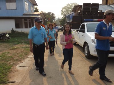 กศน.อำเภอปากชม ตั้งกองผ้าป่าและแห่บอกบุญร่วมมทบทุนสร้างห้องสมุดเฉลิมราชฯ