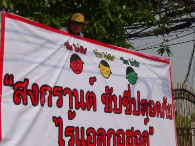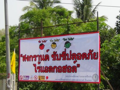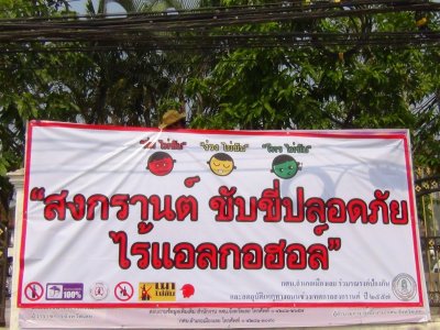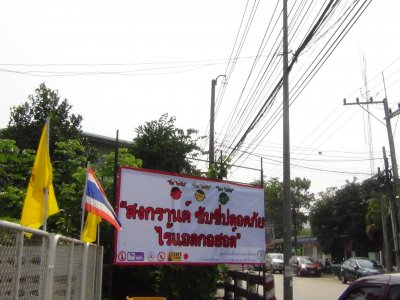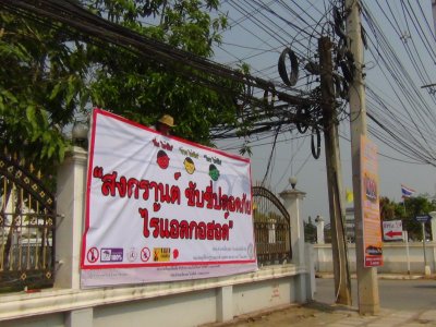 กศน.อำเภอเมืองเลย ติดป้ายรณรงค์ป้องกันและลดอุบัติเหตุทางถนนช่วงเทศกาลสงกรานต์ ปี 2557