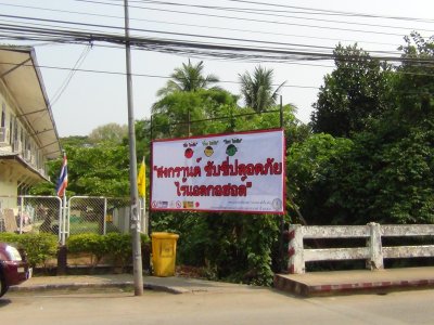 กศน.อำเภอเมืองเลย ติดป้ายรณรงค์ป้องกันและลดอุบัติเหตุทางถนนช่วงเทศกาลสงกรานต์ ปี 2557 บริเวณหน้าศาลากลาง จ.เลย และสี่แยกถนนพิพัฒน์มงคล หน้าสถานีตำรวจ