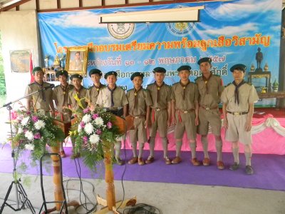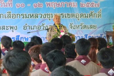 ครู กศน.อำเภอเมืองเลย นำนักศึกษา กศน.อำเภอเมืองเลย เข้าร่วมโครงการเตรียมความพร้อมลูกเสือวิสามัญ ณ ค่ายลูกเสือชุมพรเขตอุดมศักดิ์ ตำบลวังสะพุง อำเภอวังสะพุง จังหวัดเลย ระหว่างวันที่ ๑๐ - ๑๒ พฤษภาคม ๒๕๕๗ ที่ผ่านมา
