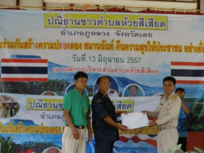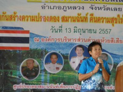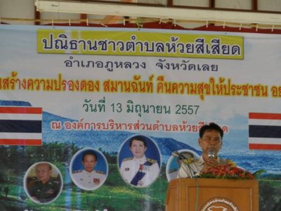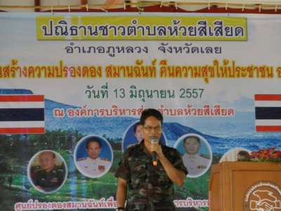 กศน.อำเภอภูหลวง มอบบุคลากร กศน.ตำบลห้วยสีเสียด เข้าร่วม รวมกิจกรรม ปรองดองสมานฉันท์ คืนความสุขให้ประชาชน ร่วมกับ องค์การบริหารส่วนตำบลห้วยสีเสียด ส่วนราชการ หน่วยงาน และประชาชนในเขตพื้นที่ ในวันที่ ๑๓ มิถุนายน ๒๕๕๗ ณ หอประชุม องค์การบริหารส่วนตำบลห้วยสีเสียด ตำบลห้วยสีเสียด อำเภอภูหลวง จังหวัดเลย