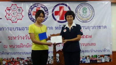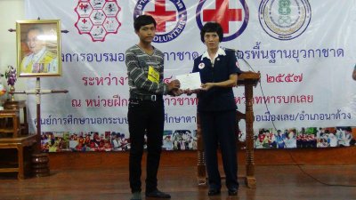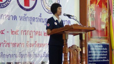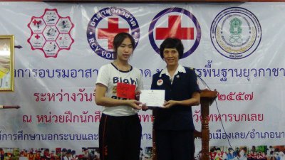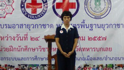 นางวณี จิวะรังสรรค์ นายกเหล่ากาชาดจังหวัดเลย เป็นประธาน พิธีปิดโครงการอบรมอาสายุวกาชาด หลักสูตรพื้นฐานยุวกาชาด