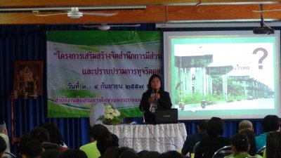 กศน.อำเภอเมืองเลย ร่วมอบรมพัฒนาครูโครงการจัดกิจกรรมเสริมสร้างจิตสำนึกการมีส่วนร่วมในการป้องกันและปราบปรามการทุจริตคอรัปชั่น