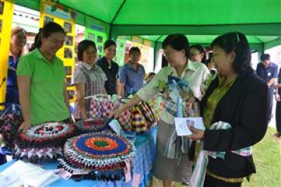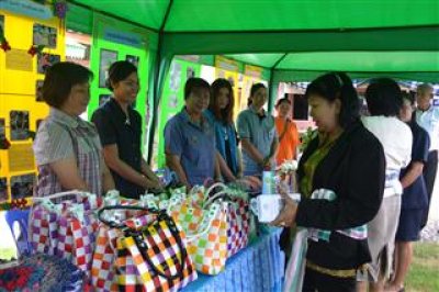 กลุ่มแปรรูปผลิตภัณฑ์จากดอกหญ้า(ไม้กวาดดอกหญ้า)ร่วมแสดงผลงานนำเสนอผลิตภัณฑ์ในการประเมินสถานศึกษาพอเพียงของ กศน.อำเภอปากชม