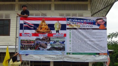 กศน.อำเภอเมืองเลย ติดตั้งป้ายค่านิยมหลักของคนไทย ๑๒ ประการ ไปสู่การปฏิบัติ โดยเน้นให้ถึงตัวผู้เรียน ครู และผู้บริหาร