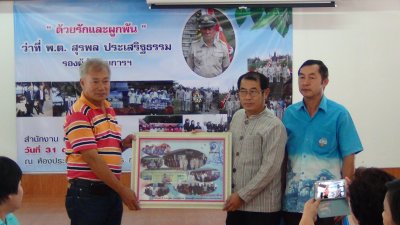 เมื่อวันที่ ๓๑ ตุลาคม ๒๕๕๗ นายบุญโชค พลดาหาญ ผอ.สำนักงาน กศน.จังหวัดเลย พร้อมผู้บริหารและคณะครู กศน. ร่วมกันอวยพรมอบของที่ระลึกให้แก่ ว่าที่ พ.ต. สุรพล ประเสริฐธรรม รองผู้อำนวยการสำนักงาน กศน.จังหวัดเลย ย้ายไปดำรงตำแหน่ง รอง ผอ.กศน.จังหวัดหนองบัวลำภู ซึ่งมีผู้บริหารทั้ง ๑๔ อำเภอได้ร่วมกันมอบดอกไม้พร้อมของที่ระลึก พร้อมอุปกรณ์เครื่องใช้ไฟฟ้า ณ ห้องประชุมคุรุสัมนาคาร กศน.อำเภอเมืองเลย จังหวัดเลย