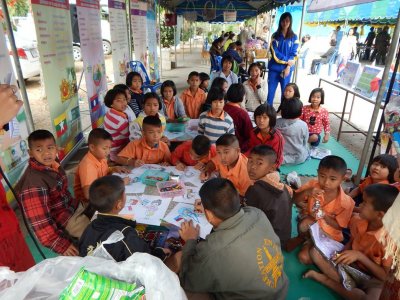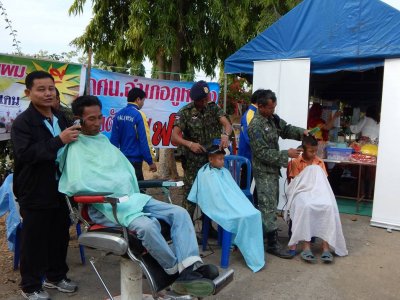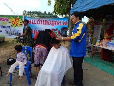 ตัดผมชาย วาดภาพระบายสี ห้องสมุดเคลื่อนที่ ในวันที่ 17 ธันวาคม 2557 ณ โรงเรียนบ้านห้วยสีเสียด