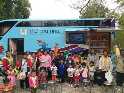 วันที่ ๕ – ๙ มกราคม ๒๕๕๘ กศน.อำเภอปากชม จัดรถโมบายห้องสมุดเคลื่อนที่