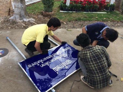 คณะบุคลากร กศน.อำเภอเมืองเลยร่วมกันพัฒนา ติดตั้งป้ายอัตลักษณ์ รอบบริเวณ กศน.อำเภอนาด้วง