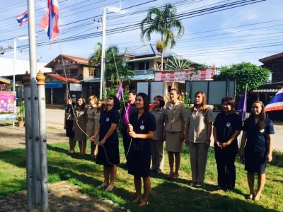 ๑๘ พฤษภาคม ๒๕๕๘ : กศน.อำเภอปากชม นำโดย นายกิตติพงษ์ โกษาจันทร์ ผูอำนวยการ นำบุคลากร กศน.อำเภอปากชม ร่วมกิจกรรมเคารพธงชาติ