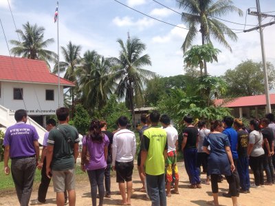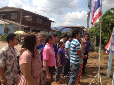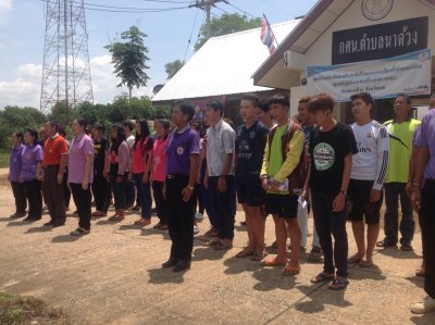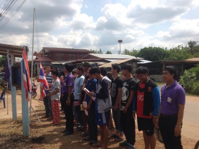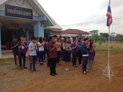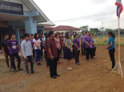 นายสุริยัน พลตื้อ ผอ.กศน.อำเภอนาด้วง. คณะครู และนักศึกษา ร่วมเคารพธงชาติ