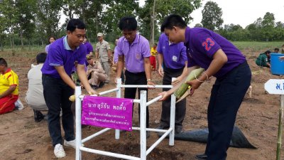 นายสุริยัน พลตื้อ ผอ.กศน.นาด้วง ปลูกต้นไม้ในโครงการปลูกป่าเพื่อพัฒนาสังคมและสิ่งแวดล้อม