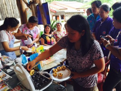 กศน.ตำบลนาอ้อ จัดอบรมอาชีพระยะสั้นการทำถั่งอกคอนโด, การทำพรมเช็ดเท้าจากเศษผ้า, การทำโดนัทจิ๋ว