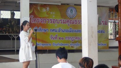 เมื่อวันที่ ๒๑ กรกฏาคม ๒๕๕๘ นายสุพัฒน์ สุวรรณสิงห์ ผอ.กศน.อำเภอเมืองเลย เป็นประธานกล่าวเปิดโครงการอบรมคุณธรรม จริยธรรม นักศึกษา กศน.อำเภอเมืองเลย ประจำปี ๒๕๕๘ โดยมี