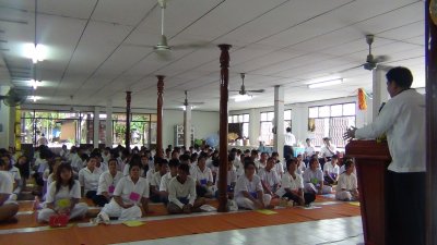 ให้แก่ คณะบุคลากรครู และนักศึกษา กศน.อำเภอเมืองเลย ณ วัดป่าพุทธยาน บ้านกำเนิดเพชร ตำบลเมือง อำเภอเมืองเลย จังหวัดเลย