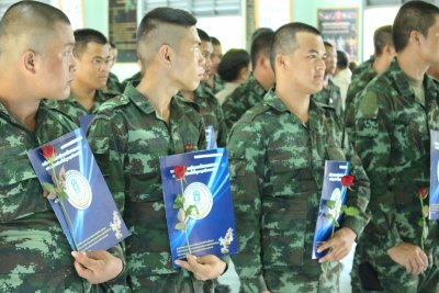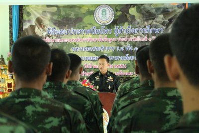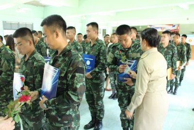 พิธีมอบประกาศนียบัตร ผู้สำเร็จการศึกษาหลักสูตรการศึกษานอกระบบระดับการศึกษาขั้นพื้นฐาน ประจำภาคเรียนที่ ๑ ปีการศึกษา ๒๕๕๘ ทหารกองประจำการ ร.๘ พัน ๑