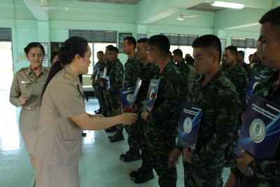 าขั้น พื้นฐาน ประจำภาคเรียนที่ ๑ ปีการศึกษา ๒๕๕๘ ให้แก่ทหารกองประจำการ ร.๘ พัน ๑ โดยมีนายระวี คึมยะราช ครู ศูนย์การศึกษานอกระบบและการ