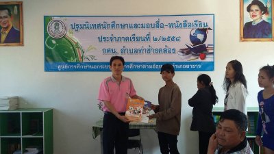 กศน.ตำบลท่าช้างคล้อง อำเภอผาขาว จัดกิจกรรมปฐมนิเทศนักศึกษาและมอบสื่อ-หนังสือเรียน ประจำภาคเรียนที่ ๒/๒๕๕๘