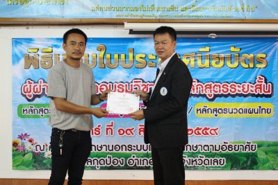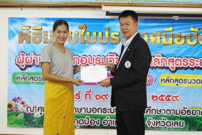 กศน.อ.เมืองเลย มอบวุฒิบัตรผู้ผ่านการอบรมหลักสูตรระยะสั้น ช่างตัดผมชาย ช่างเสริมสวย นวดแผนไทย ณ ห้องประชุมคุรุสัมนาคาร กศน.อำเภอเมืองเลย จังหวัดเลย