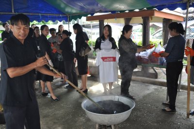 เมื่อวันที่ ๑๗ ตุลาคม ๒๕๕๙ นายบุญโชค พลดาหาญ ผอ.กศน.จังหวัดเลย พร้อมนายสุพัฒน์ สุวรรณสิงห์ ผอ.กศน.อำเภอเมืองเลย นำคณะบุคลากร กศน.อำเภอเมืองเลย และกศน.อำเภอนาด้วง จัดสอนวิชาชีพการย้อมผ้าตามเทคนิควิธีการในท้องถิ่น หรือวิธีการอื่น โดยให้ทำในลักษณะกลุ่มสนใจ หรือหลักสูตรระยะสั้น เพื่อเป็นการแก้ปัญหาขั้นต้นและเป็นการดำเนินการเพื่อถวายเป็นพระราชกุศลแด่พระบาทสมเด็จพระเจ้าอยู่หัวในพระบรมโกศ โดยประชาชนสามารถไปใช้บริการย้อมผ้าและเรียนเทคนิควิธีการย้อมผ้า ได้ที่ กศน.อำเภอเมืองเลย, ๑๔ กศน.ตำบล ในเขตพื้นที่อำเภอเมืองเลย ตั้งแต่วันที่ ๑๗ ต.ค.๒๕๕๙ เวลา ๐๘.๓๐ น. - ๑๖.๓๐ น. เป็นต้นไป (ยกเว้นวันหยุดราชการและวันหยุดนักขัตฤกษ์)