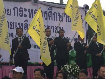 เมื่อวันที่ ๑๓ มกราคม ๒๕๖๐ ที่บริเวณลานพระบรมมรูปทรงม้า พล.อ.ประยุทธ์ จันทร์โอชา นายกรัฐมนตรีและหัวหน้าคณะรักษาความสงบแห่งชาติ (คสช.) เป็นประธานปล่อยขบวนคาราวาน “รัฐบาลโดยกระทรวงศึกษาธิการช่วยเหลือประชาชน” จำนวนกว่า ๙๐๐ คัน พร้อมจัดทีมนักศึกษาและบุคลากรทางการศึกษาช่วยเหลือประชาชนที่ประสบอุทกภัยประมาณ ๓๐๐ ทีม เพื่อบริการแก้ไขและซ่อมแซมสิ่งของที่เสียหาย