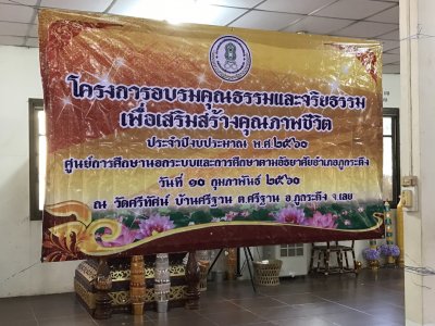 กศน.อำเภอภูกระดึง จัดโครงการอบรมคุณธรรมจริยธรรม นักศึกษา