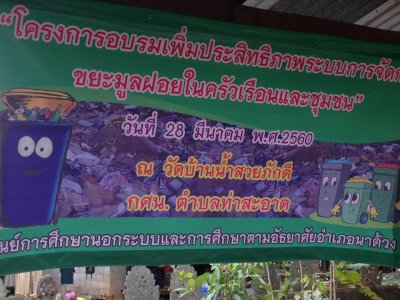 วันที่ 28 มีนาคม 2560 กศน.ตำบลท่าสะอาดได้ดำเนินโครงการอบรมเพิ่มประสิทธิภาพระบบการจัดการขยะมูลฝอยในครัวเรือนและชุมชน สถานที่ ณ วัดบ้านน้ำสวยภักดี หมูที่3 ตำบลท่าสะอาด อำเภอนาด้วง จังหวัดเลย