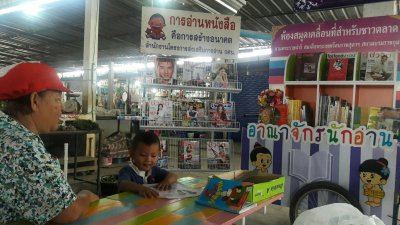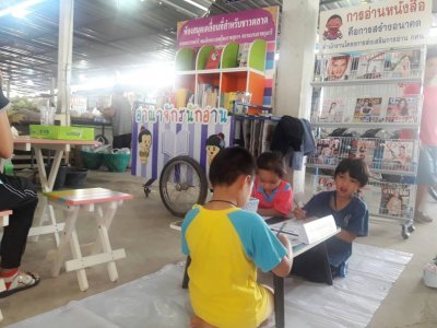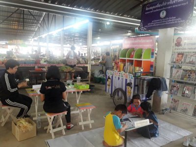 ห้องสมุดประชาชน กศน.อำเภอเมืองเลย จัดกิจกรรมโครงการห้องสมุดเคลื่อนที่สำหรับชาวตลาด ณ ตลาดใหม่เพชรเจริญ ต.เมือง อ.เมืองเลย จ.เลย