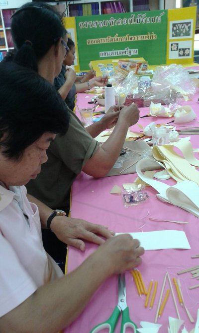 วันที่2 มิ.ย.60 กศน.อำเภอภูกระดึง สอนการทำดอกไม้จันทน์ ให้กลุ่มแม่บ้าน ณ กศน.ตำบลศรีฐาน