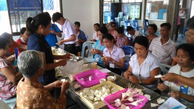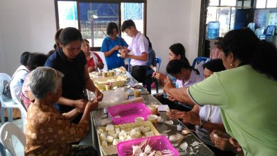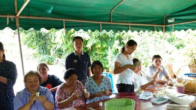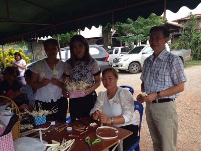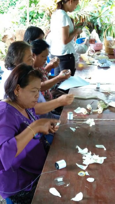ศูนย์การศึกษานอกระบบและการศึกษาตามอัธยาศัยอำเภอนาด้วง ได้มอบหมายให้ กศน.ตำบลทั้ง 4 ตำบลออกให้บริการประชาชนโดยการสอนการทำดอกไม้จันทน์