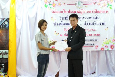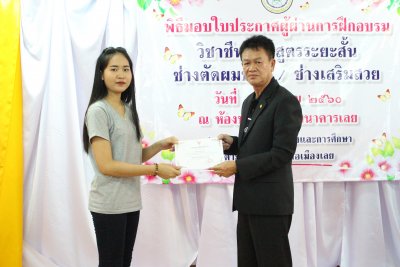 กศน.อ.เมืองเลย มอบใบประกาศผู้ผ่านการฝึกอบรมวิชาชีพระยะสั้น ช่างตัดผม และช่างเสริมสวย ประจำปี ๒๕๖๐