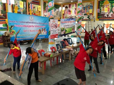 17 ธันวาคม 2560 กศน.อำเภอนาด้วง โดย กศน.ตำบลท่าสะอาดจัดกิจกรรมการศึกษาเพื่อพัฒนาสังคมและชุมชน “ส่งเสริมผู้สูงวัย ใส่ใจสุขภาพ” ณ วัดบ้านน้ำสวยภักดี